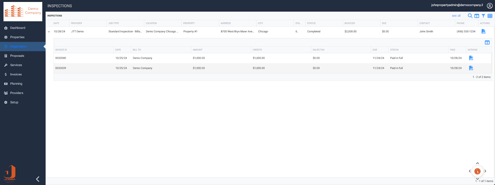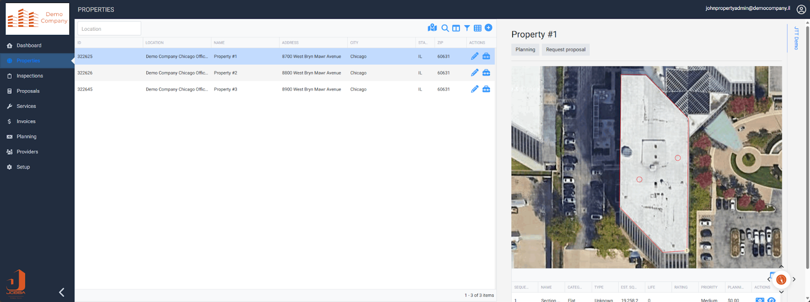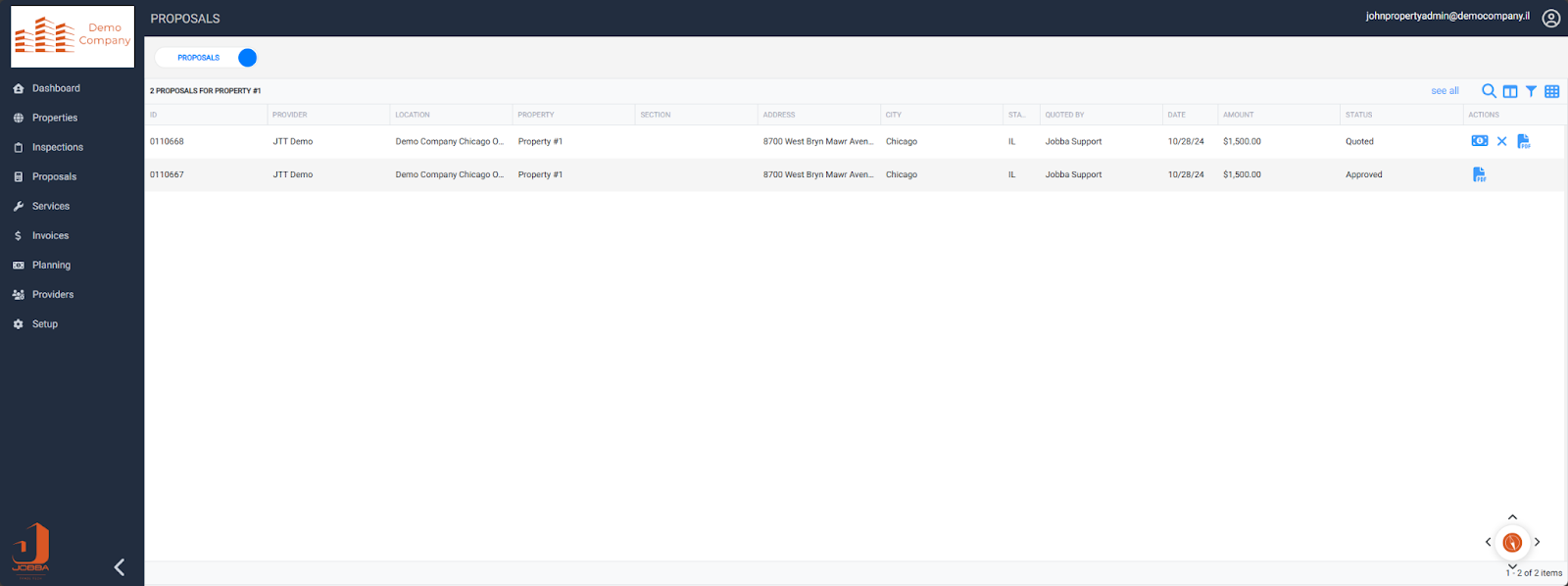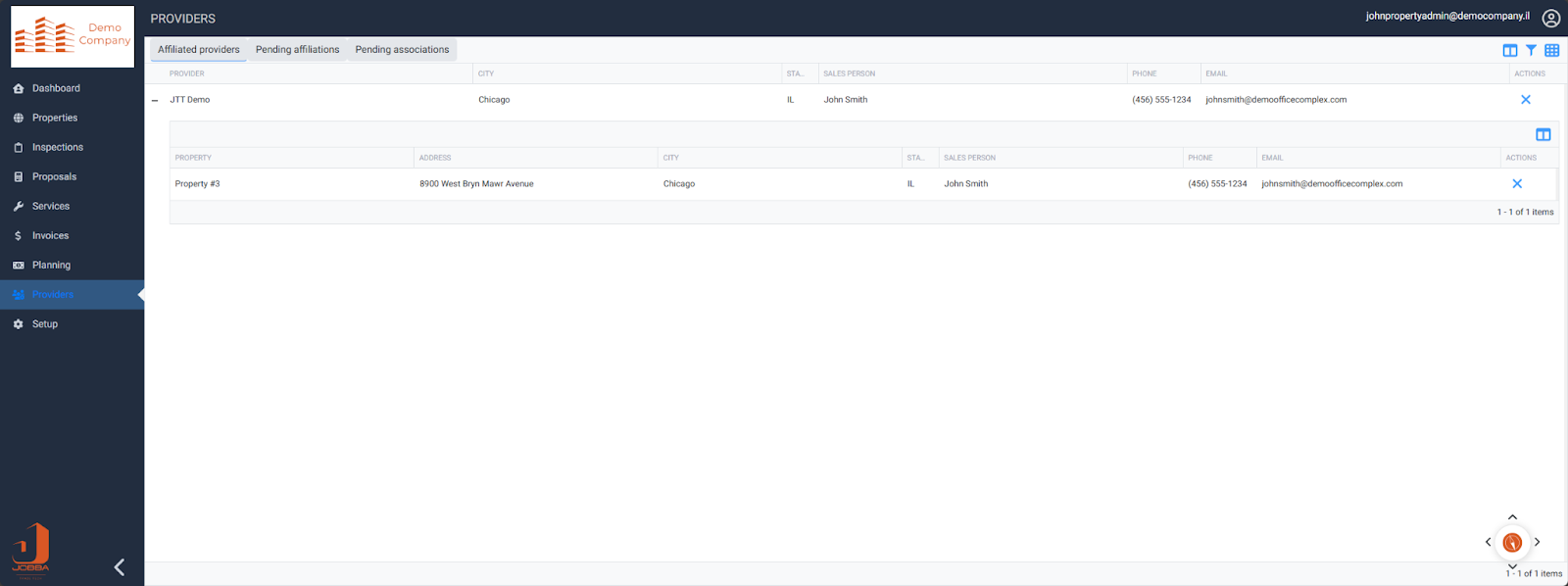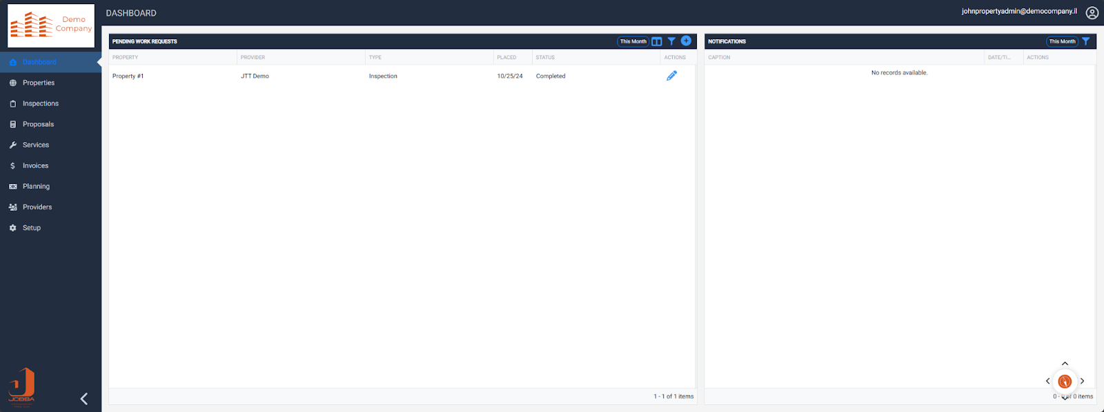 Service Status overview. Able to select any Property and view Status “Requested” vs “Active” vs “Closed”