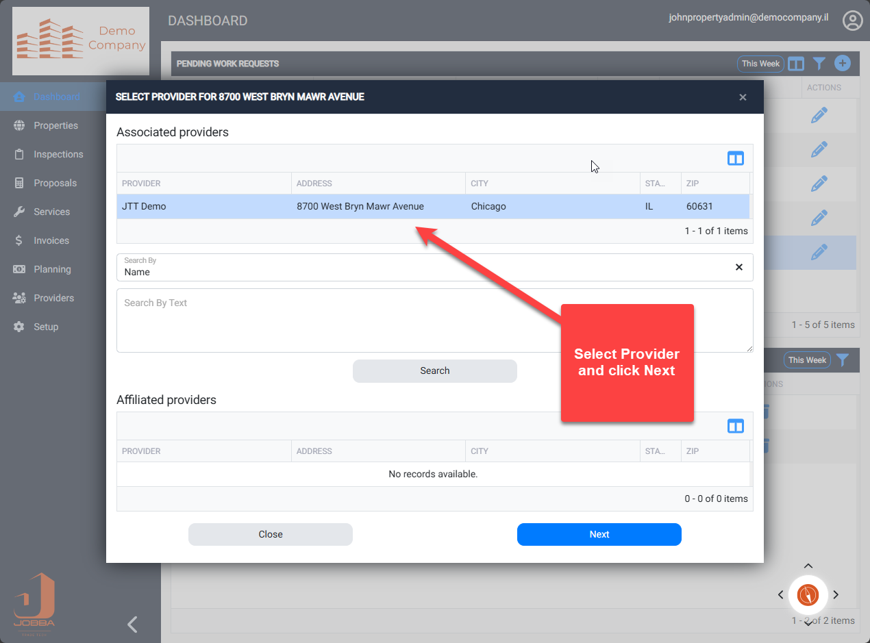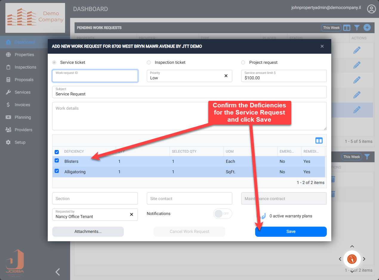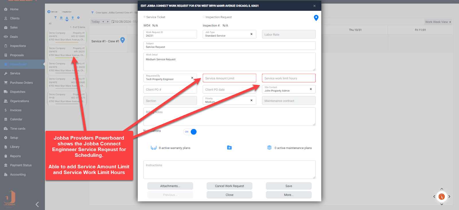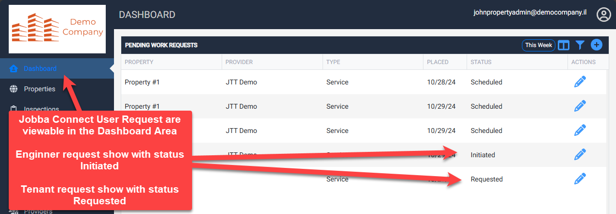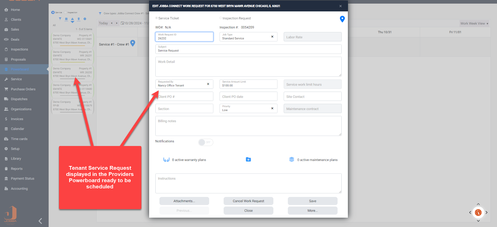 Tenant Service Request - Request will be displayed in the Providers Jobba Powerboard for scheduling