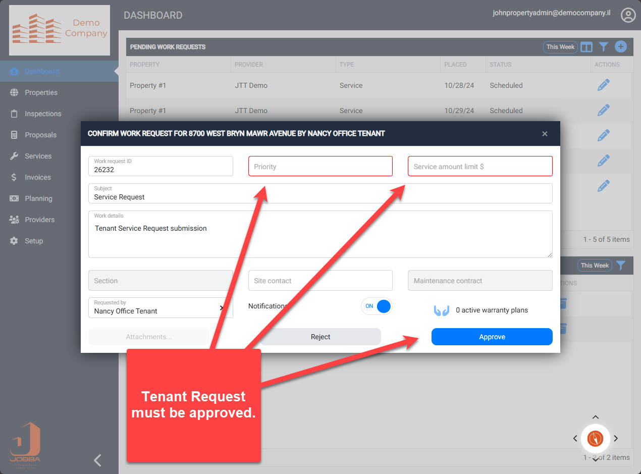 Tenant Request must be approved by Jobba Connect Manager or Admin.